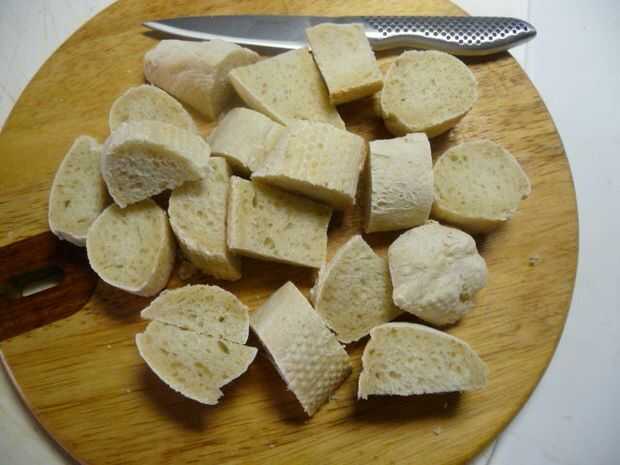 Cortar la baguette en trozos de 1"- 2". Ponga a un lado.