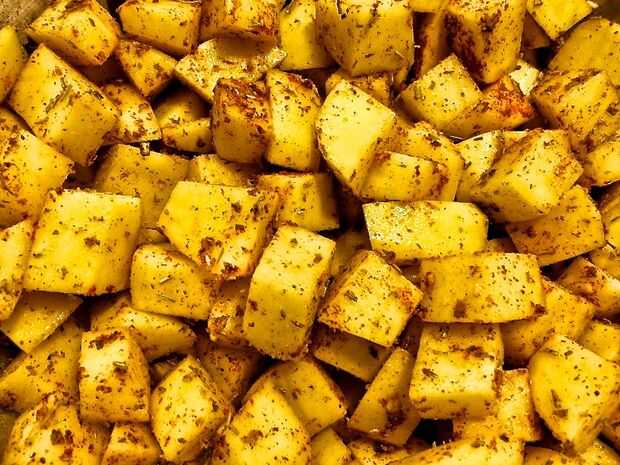 Estos crujientes patatas de oro van igual de bien con una comida de lunes a viernes de pollo plancha, chuletas o lomo. Asar en una temperatura más alta de lo normal, crea una corteza más crujiente y la superficie dorada.Ingredientes6 papas teja3 dien
