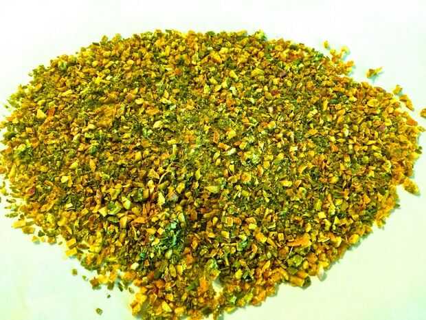 Mezclado a mano de: chalotes liofilizadas, sal, cebollino, ajo, granos de pimienta verde y cebolla.