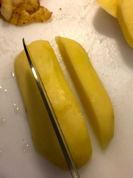patatas al ajo molido ahora son tradicionales, por lo menos en nuestra casa y con razón.Paso 1: Patatas de chuleta Picar patatas * y añadir a la olla fría y vacía. Los trozos más pequeños el más rápidos te cocinan. Aquí he utilizado ~ 2 libras de oro