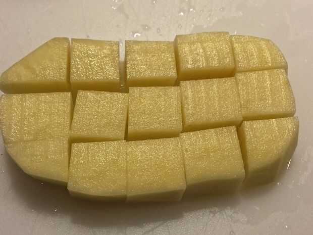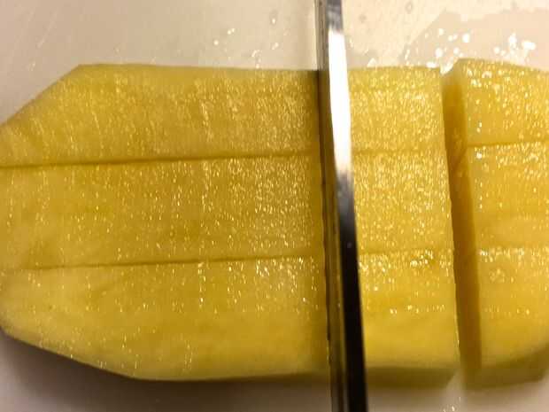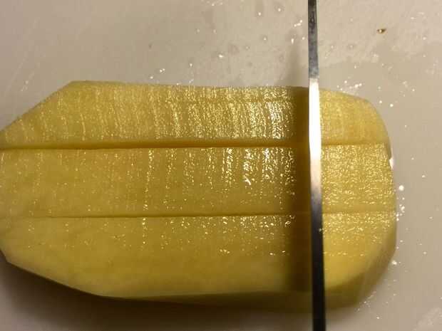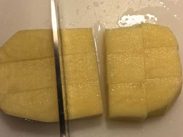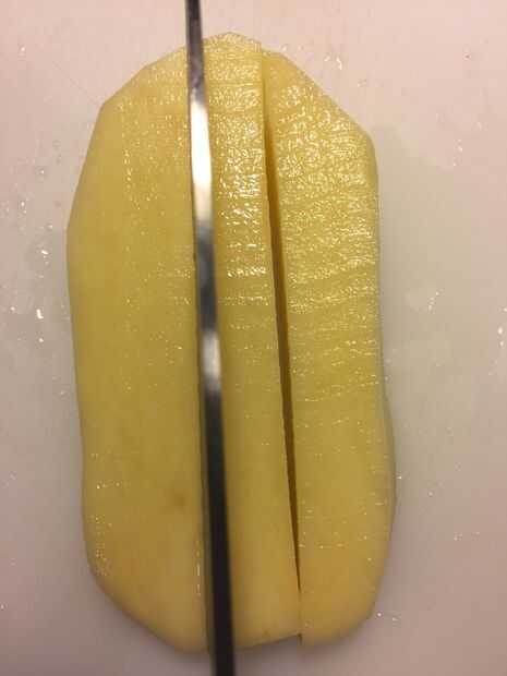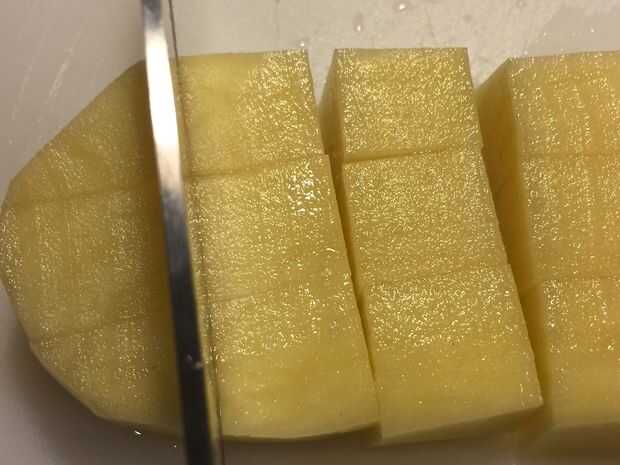 Y continuar cortando las patatas hasta que se complete el trabajo.