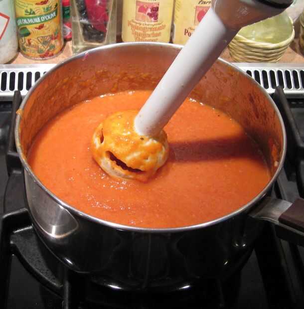Asado de pimiento rojo y tomate sopa de cero (6 / 8 paso)