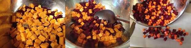 Asado de remolacha, patata dulce, lechugas mixtas y ensalada de camarones (3 / 8 paso)