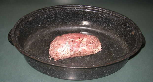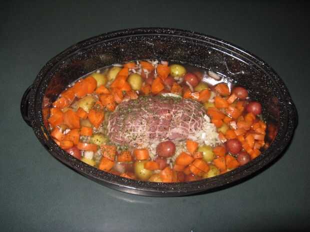 Colocar el solomillo de cerdo asado en un cuarto de galón 2 pote seguro pan o en el horno de la asación.