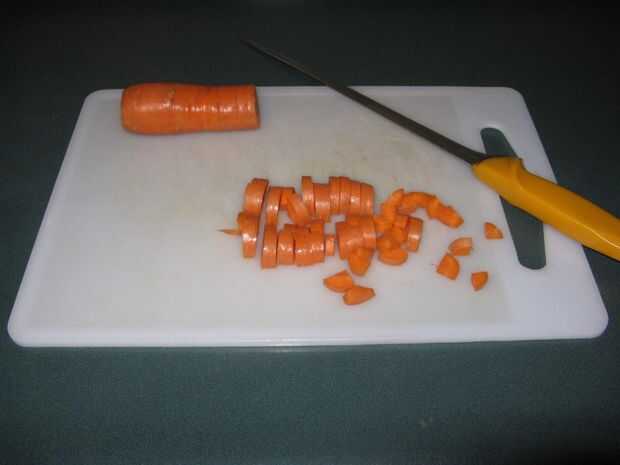 Cortar en cuadritos y añadir una zanahoria de buen tamaño.