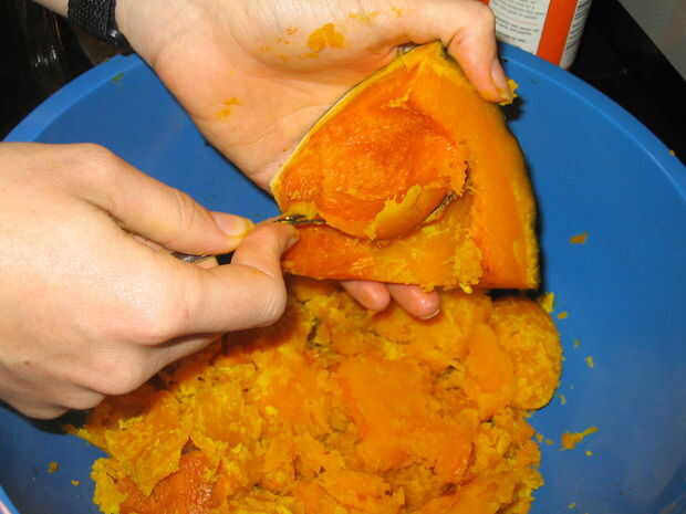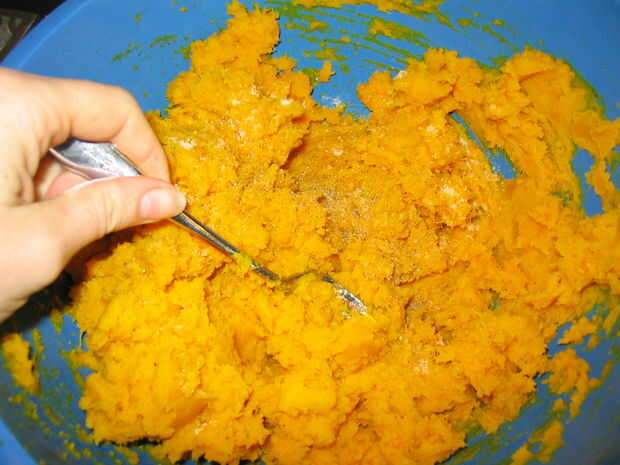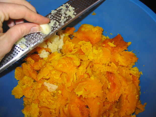 El ajo crudo se cocinar ligeramente por la calabaza al vapor caliente. Si lo prefiere, puede usar ajo asado; Como la picadura de ajo semi crudo, pero probablemente soy un caso extremo.