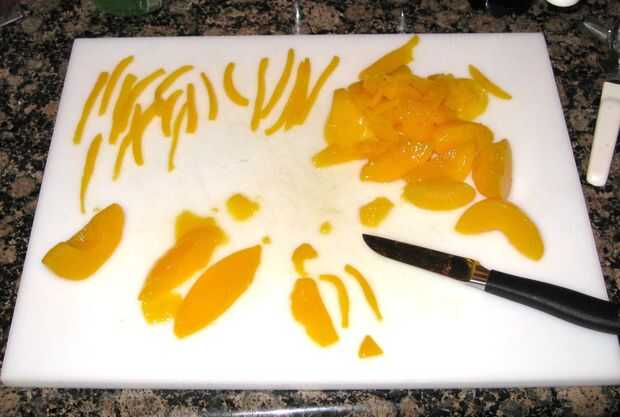 Cuando la primera capa era completamente (1-2 horas) arregló los trozos de pera y melocotón encima de ella. ¿Recuerdas la gelatina extra en el refrigerador? Una vez que todas sus piezas se arreglan algo de él en el microondas derriten (mantener un ojo en él esto es muy rápido) y vierta cuidadosamente sobre todo. Esto mantendrá todo en su lugar ya que la fruta tiene una tendencia a flotar fuera de lugar. Permita que esta capa en la nevera antes de cubrir con una segunda hornada de gelatina, como la primera. Cuando la segunda capa se arregló las uvas en él y les cubrió con una capa delgada de gelatina igual que con los duraznos y peras.