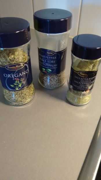 1. orégano - sólo para el lanzamiento 2. menta - para el lanzamiento 3. pimienta - para el lanzamiento 4. sal - a su gusto 5. aceite de oliva - hasta su gusto 6. mantequilla - 1 cuchara 7. zanahorias