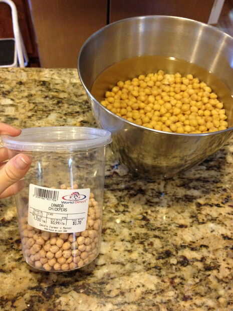 - Medir a los garbanzos en un recipiente grande . Estos bebés se expandirán.