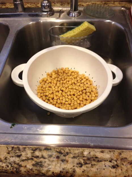 - Enjuagar los garbanzos por llenar el recipiente con agua, Remolino con una cuchara y verter hacia fuera la mayoría del agua. Repita unas cuantas veces.