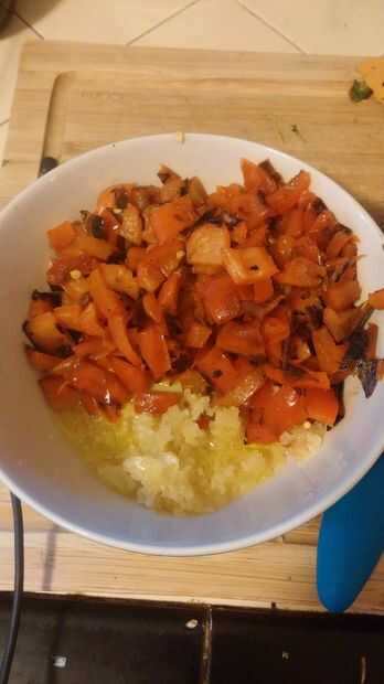 Paso 3: Asar los pimientos rojos y maíz; preparar ajo
