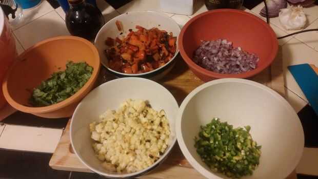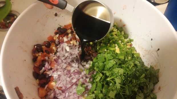 Luego, agregar las verduras restantes, vinagre balsámico y revuelva suavemente para mezclar una vez más.