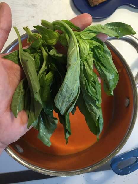 Espinacas frescas picadas son un buen complemento. Intenta añadir en este paso. Me gusta servir esta sopa de albahaca y tomate asado con pan crujiente agradable. Los niños como mojar en la sopa. Se puede decorar con un poco de queso parmesano así.