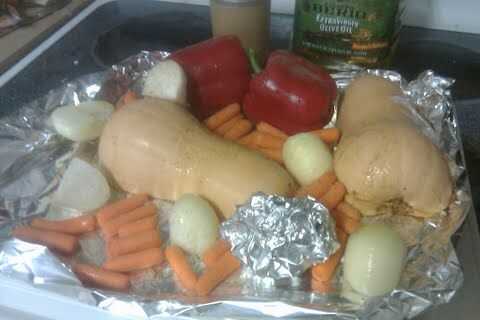 En una placa para horno suficientemente grande como para sostener todo, línea con papel de aluminio