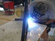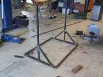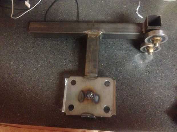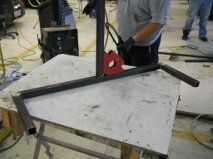 Tomó mis dibujos de pincel y comenzó a cortar algún metal. Un amigo del trabajo, Chet Brown fue contratado para hacer la soldadura. Es un soldador mejor que nunca seré. También tuve un amigo Zach Harrison moler y quitar las rebabas de las piezas antes de soldar. Se utilizó una sierra de cortar metal y cortan las piezas. Entonces sacó el soldador de mig y alineados cuidadosamente todas las piezas de soldadura. Las partes fueron bien juntos. Yo realmente no he detallado los planes en este Instructables bien porque no es la manera de que trabajo. Prefiero construir cosas basadas en su aspecto buenos para mi. También no sé qué materiales usted puede venir a través. casi todas las partes que no sea el metal se recicla. He hecho un montaje del motor de una vieja placa de pestillo de resorte. Funciono perfecto y utilicé 4" abrazaderas para sostener el motor en su lugar.