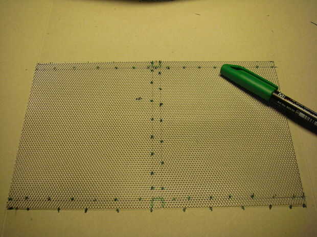 El truco es que cuando un pedazo de malla se coloca en la plantilla, el diseño es visible a través de la malla y se puede copiar a este último con un marcador de punta de fieltro.