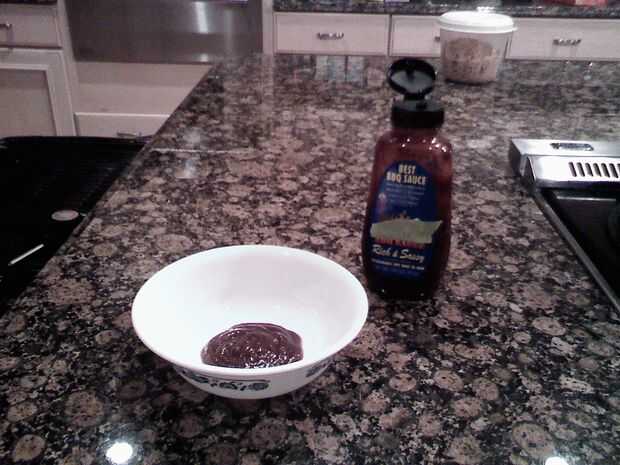 Ahora hay que preparar para marinar el perro caliente. Sólo usé salsa BBQ porque era simple, pero usted puede mezclar su propia si quieres.