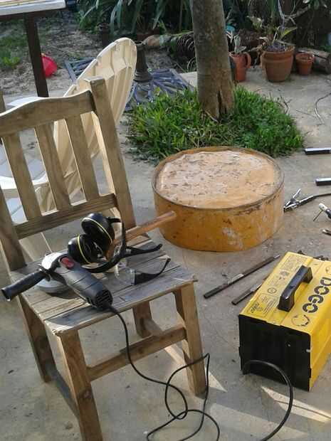 Con el uso de una inapropiada, cortar la parte inferior de un tacho metálico de obra (en los se suelen transportar la cal y arena). El alto puede marco base de en una lo deseado, recomiendo aproximadamente 35 cm para tenga más capacidad.