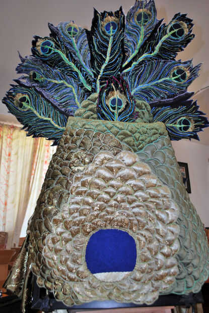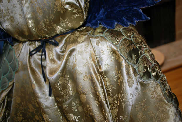 Tiró del borde inferior de las escamas hacia abajo, hice un vapor final y sacó el cuerpo moldeado de falda y pavo real.