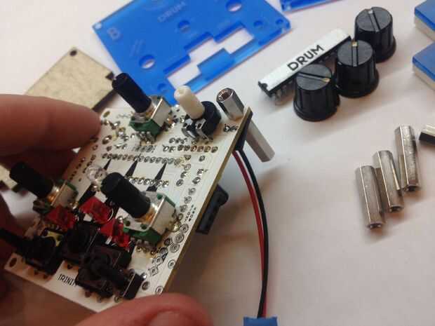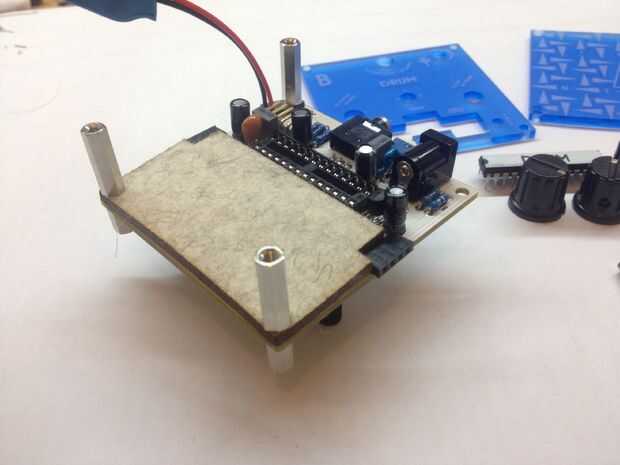 Antes de que vestir su Trinidad es muy buena idea para probar que todo funciona (pondremos un tutorial de depuración en línea pronto). ¿Todo funciona? Es hora de vestir! A bordo v1.0 hay 3 discos largos de la misma longitud y uno más que compensa la diferencia de altura. Hacer los 3 primero y luego ya, que va al lado del conector de jack de alimentación.