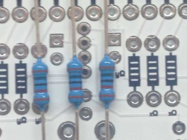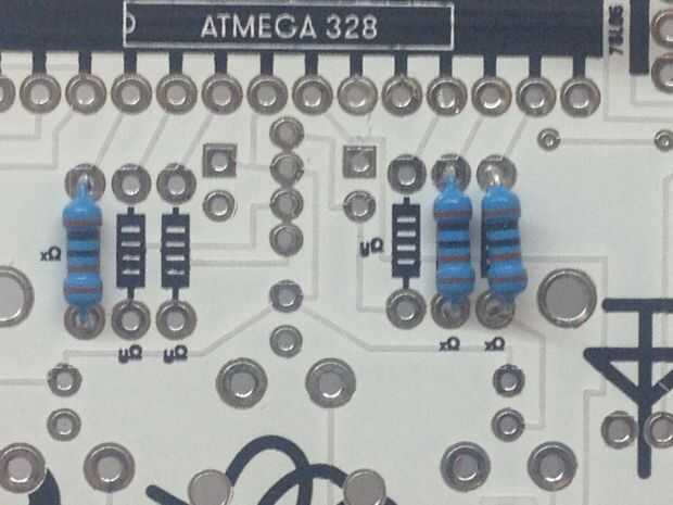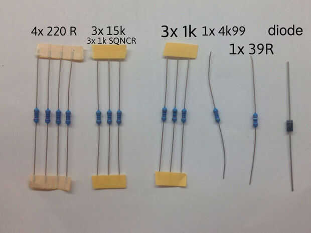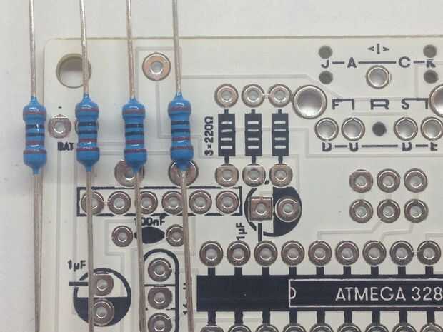 - 4 x 220R – rojo rojo marrón (a bordo v1.1 tres de estos 220R están etiquetados como zOhm)