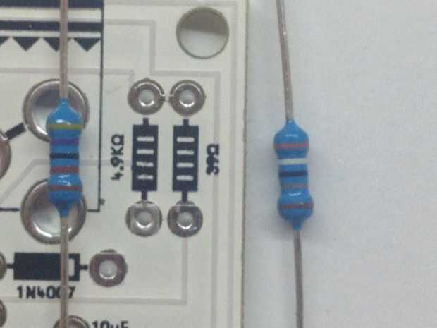 Diferentes ranuras de resistores tienen valores de resistencia diferentes. Leer las rayas de color o los valores, mida con el multímetro.