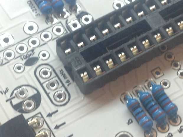 En el zócalo de la viruta cuenta la polaridad de la viruta indicada por la muesca. En el intento de conector de audio para la soldadura en la forma que no haya ningún espacio entre el conector y el PCB. Que cortar las patas restantes del gato. Comprobar que la soldadura del lado correcto de la PCB!