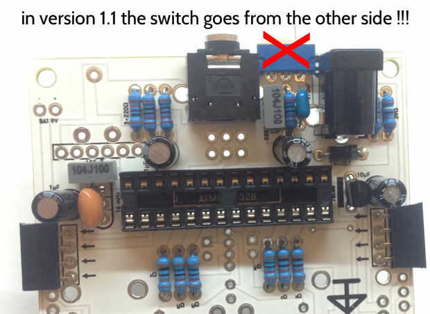 en la versión 1.1 con plástico completo el interruptor de la vivienda tiene que ir del otro lado de la Junta! Usted puede ver claramente en las imágenes.