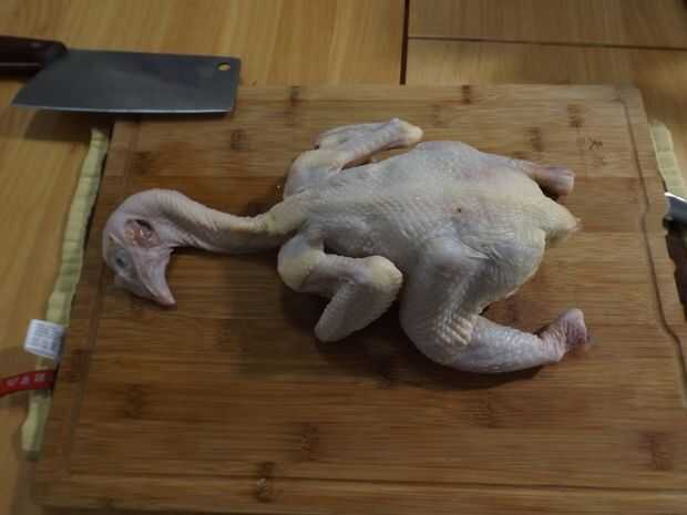 Ahora si eres el tipo de persona (como yo) que le gusta tener un carnicero de cada bloque, a continuación, podría preguntarse sobre el mundo bastante amplio de pollos 'alternativos'. Lo que me refiero son las distintas razas de pollo que podemos obtener de nuestras tiendas de carnicero o de especialidad. ¿Debe asarlos? ¡Claro! Ser consciente del tamaño. Arriba puedes ver la gallina que elegí para este instructable. No es un asador o una freidora. Es también sólo un pollo bastante magro. Ahora esta elección fue más una cuestión de disponibilidad de uno de sabor. Actualmente estoy viviendo en China, que significa que las opciones no son lo mismo como estaban de vuelta a casa. Por suerte, la preparación es la misma. Pero, puesto que este pollo se apoye sobre la parte magra, es aún más importante que mantener esa piel en el pájaro.