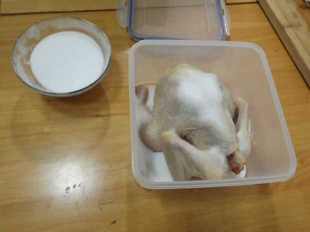 Prefiero la salmuera sólo una vez en la mezcla, ahorrando cualquier sólidos grandes de relleno dentro de la gallina mientras está en el horno. En cuanto a tiempo, cuanto más tiempo el pollo es en la salmuera más ese sabor que va a absorber. Tienden a 1 día de la salmuera, así que las recomendaciones anteriores con un grano de sal. Si usted quiere salmuera por menos tiempo, puedes hacerlo. Sin embargo, asegúrese de ajustar la salinidad de la salmuera en consecuencia.