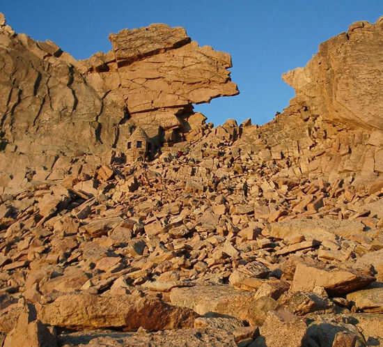 El campo de roca marca el punto de 6 millas de la caminata. La primera foto es la vista desde la entrada de campo de roca hacia la Cumbre. Cuando primero entra en el campo de roca, el camino está bien definido. Mudanza más profunda en el campo de roca, el camino eventualmente desaparece. Localizar el orificio en la parte superior de la ladera delante de usted y la cabeza de esa dirección (ver primera foto). En un principio el campo de boulder es más de un campo de rock como se ve en la segunda foto. Las rocas se convierten en el tamaño de los coches cerca del ojo de la cerradura para revolver cuidadoso es necesario pasar. En el otro extremo del campo boulder hay un repecho en la base de la cerradura. Despegue en tiempo mínimo para arriba de las rocas en esta ladera, teniendo cuidado de no caer en las grietas grandes entre ellos. En la parte superior de esta pendiente es el famoso ojo de la cerradura, un lugar llamado así por la forma única de la formación de roca (ver las fotos de las terceros y cuarta). Menos de dos millas lo separan de la Cumbre, pero estos dos millas puede tardar tanto como la primera 6. Este es el punto de giro para muchos excursionistas ya que el camino más allá de la cerradura es mucho más físicamente exigente, traicionero y expuestas.
