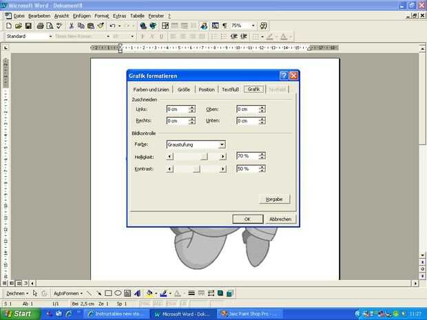 sin o algo como eso. En 'Gráfico', definir los colores a gris y el brillo a 70.