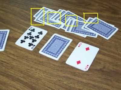 Agregue el valor de las cartas de la vuelta. En este caso 9 más 2 es igual a 11. Cuenta once cartas de la baraja y apartarlas. En la foto agrupan las once cartas de la cubierta en grupos de tres y les partió con cajas amarillas para hacer más fácil para usted seguir. La última agrupación tiene, por supuesto, sólo dos cartas para hacer tarjetas de once.
