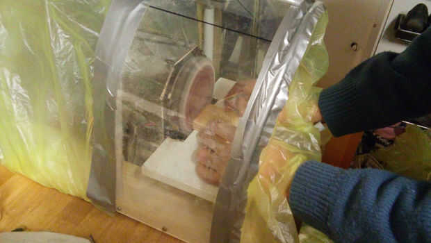 Todos conectados al tubo de aspirador que, creando suficiente depresión evita que el polvo saliendo mientras lo chupa más.