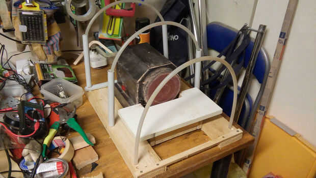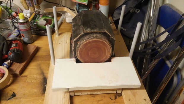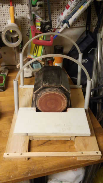 Luego entré en los dos tubos flexibles de 10 mm (flexible pero lo suficientemente rígidas) en los dos anteriormente creados estructuras detrás y directamente en apoyo de frente de madera; de esa manera tiene un obturador de ligera pendiente de la pantalla mejoraría la visibilidad.