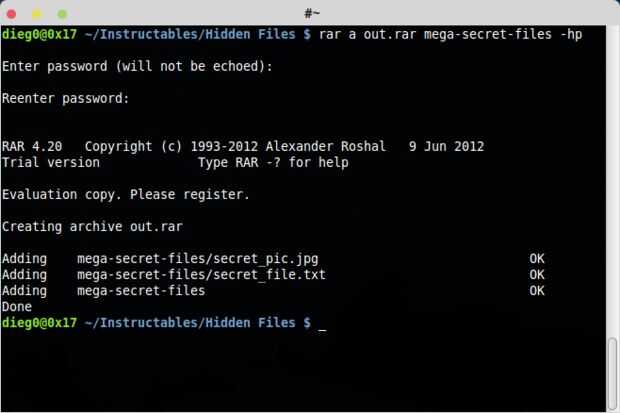 Utilice el comando rar para comprimir la información. Debe utilizar una contraseña para aumentar la seguridad.