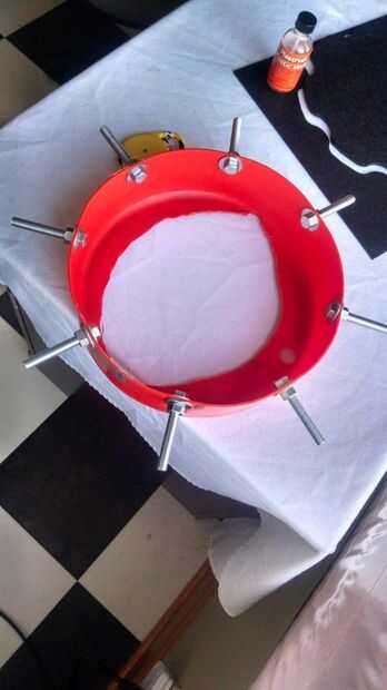 -Orificio de 8" diámetro de la parte inferior del recipiente. Usé un multitool