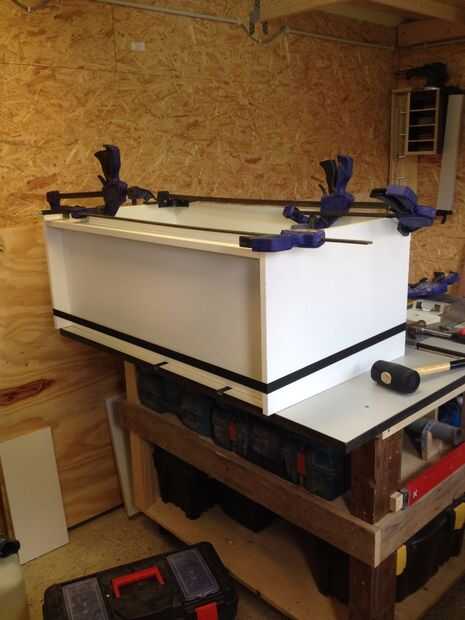 La plataforma también es escalera para los gatos a la pista del gato que el apoyo de dos estantería billy de Ikea.http://PNR.ma/ddoPsRPaso 1: Banco de almacenaje Ikea Stuva X 2Los gatos entraría el aseo de la parte posteriorPaso 2: Quite el tablero d
