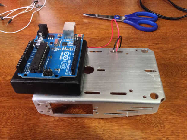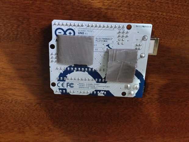 3. Coloque cinta en la parte posterior de la Arduino Uno