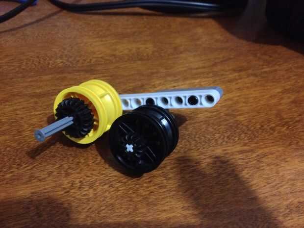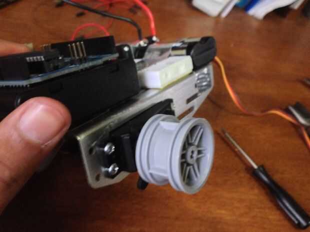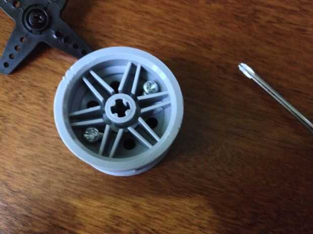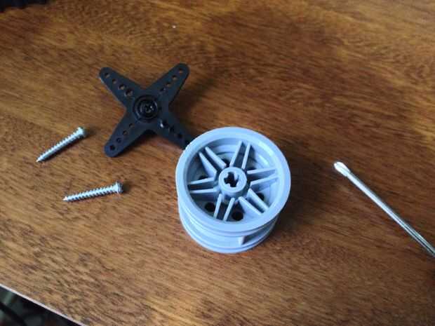 1. toma el volante LEGO y atorníllela en el cuerno del servo (lo mismo para el otro lado)
