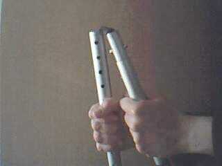 Una muleta de ajustar la altura normal se hace de un conjunto telescópico de 2 tubos de aluminio donde los ajustes más finos en el más grande, el tubo más delgado tiene solo 2 orificios, y una primavera con 2 pernos de trabado en esos agujeros.