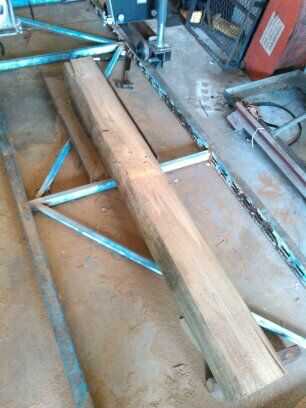 Configurar una base de registro temporal debajo de la sierra y lanzó un 10" poste de energía 6' de largo en él.
