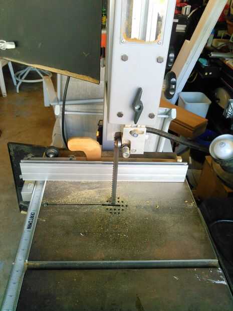 Como se puede ver, utilizando una sierra existente viene con muchas ventajas. Las ruedas están perfectamente tamaño y llevan rodamientos sellados, tiene los Ajustadores de alineación ya diseñados y cuenta con un Ajustador de tensión de hoja con un calibre. Además, cuenta con una guía ajustable de lámina, así al cortar pequeños tableros usted puede cerrar la hoja exponen largo hacer el corte más preciso.