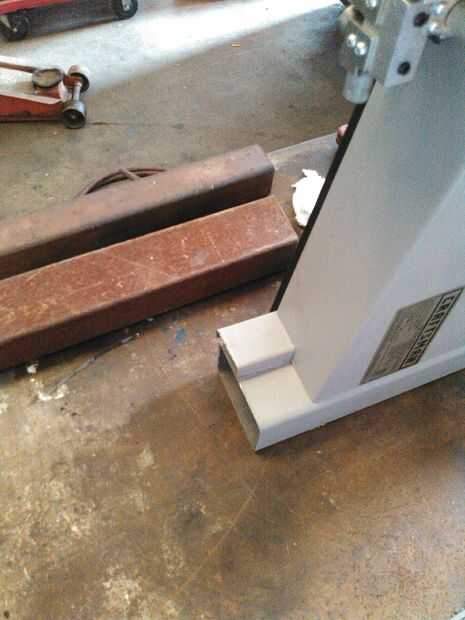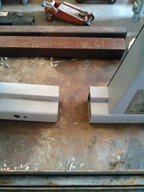 Al planear esta parte, el general plan corte área, así como la guía se moverá, cuánto "carne" tiene que fijar su extensión para sentarse y reflexionar sobre todo 10 veces antes de despedazar!!!!!! Como se puede ver en la imagen, no usé mi propio Consejo #3 de la página anterior. Eso fue porque tengo una sierra de cinta para corte de metales. Corte asegurándose de que el tubo fue recto y picadas lejos! Esta sierra particular tiene un tubo de la caja como su "columna vertebral". El tamaño de la tubería es impar, no disponible por lo que acababa de usar un trozo un poco más pequeño había y luego del hierro de ángulo en el exterior para mayor resistencia.