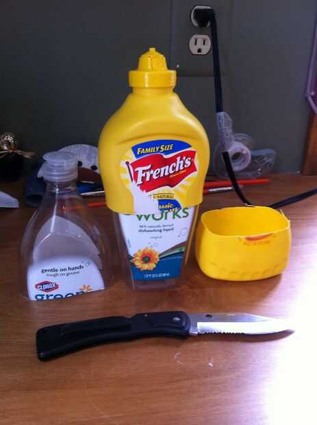 1) ya que la mostaza botella ampliado otra vez en la parte inferior, cortarlo en primer lugar, asegúrese de hacer una línea recta a través de...