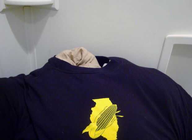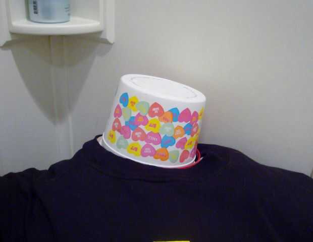 Poner la camiseta en el juego. Poner en la ducha y verticalmente. El cubo es para la cabeza. Poner la máscara en el cubo.