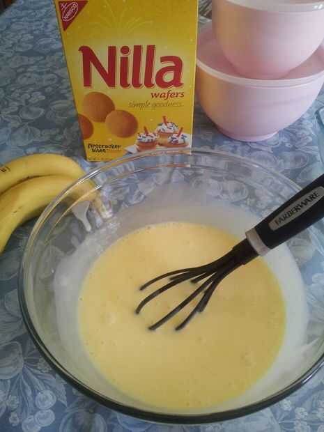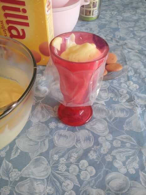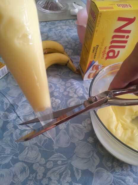 Simplemente hacer el pudín de acuerdo con las instrucciones en el paquete. A continuación, puede poner el budín en una bolsa de plástico tubería bolsa o ziplock y cortar el extremo. (Estoy usando una manga pastelera) Se puede también usar una cuchara si quieres.
