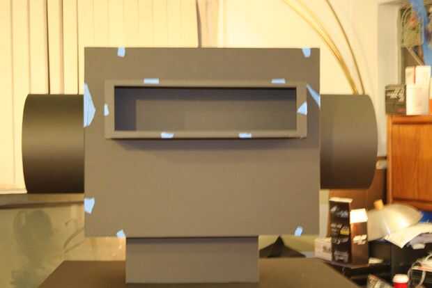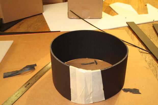 Después de ver cómo limpia y agradable el cuerpo estaba empezando a mirar la cabeza ya no cumplió con mis normas. Decidí rehacer la cabeza en cartón pluma usando la cabeza anterior como modelo. He creado una caja del mismo tamaño que la caja asegurarse e hice una prueba de ajuste. Cartón pluma viene en varios grosores que se intercalan entre dos hojas de papel. Tomé mi cuchilla y en su ajuste más bajo empezó a anotar de un lado del cartón pluma. Lo que esto hace es crear un lado y a la flexión y luego comienzas a doblar el cartón pluma en formas circulares.