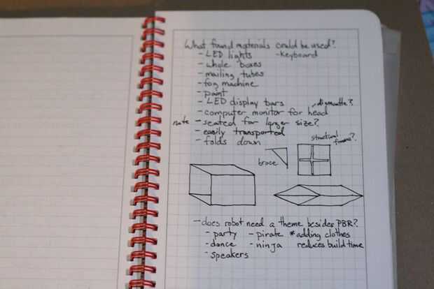 Un portátil le permite documentar sus ideas. Puede esbozar ideas que te gusta de un robot y esbozar ideas de otros para construir un robot que se adapte a sus necesidades. Si hay una serigrafía de un robot en el Bloc de notas entonces obtendrá puntos extra.