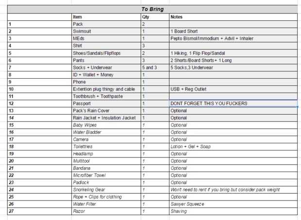 Oh y traer un traje de baño. Nunca sabe cuándo vas a ir a nadar! Y por lo menos si tiene un cómodo par de Bermudas de color sólido o algo asi, lo doble como algo ligero que puede llevar a cabo mientras senderismo!